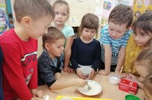 В подготовительной к школе грппе №7 "Росинка" воспитанники при проведении образовательной деятельности научились измерять объем сыпучих веществ, устанавливать время на макете часов, вычислять время выпечки от количества муки, самостоятельно выбрали меру для измерения (столовая и чайная ложка).