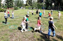 В младшей группе №2 "Теремок" прошло летнее спортивное развлечение "Обруч нам необходим, поиграют дети с ним! Подвижные игры на улице развивают ловкость, спортивные навыки и физические способности, а также дают массу положительных эмоций. Во время спортивного мероприятия дети бегали из обруча в обруч, учились вращать и прокатывать обруч, а также поиграли в подвижнкю игру "Кто быстрее встанет в домик".