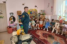 В рамках тематической недели по пожарной безопасности в средней группе №8 "Соловушка" была проведена беседа с сотрудником МЧС.