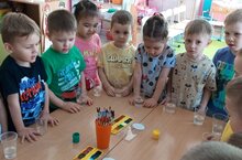 Дети младшей группы № 12 вместе с воспитателем Сайфутдиновой З. А. играли в игры-эксперименты с водой