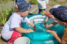 Дети младшей группы № 10 (воспитатель Мустакимова А. Н.) отправились на рыбалку, взяв с собой удочки и ведерки.