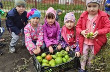 Ребята нашего детского сада хорошо потрудились в огороде, собрав весь урожай.