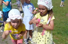 Пускание мыльных пузырей – одна из самых незатейливых, но при этом самых весёлых детских забав. Конечно, лучше всего эта затея подходит для прогулок на свежем воздухе: ветерок помогает выдувать и отправлять в путешествие разноцветные мыльные шарики. Главное создать у детей радостное настроение, вызвать эмоциональный подъём и сформировать праздничную культуру, умение проявлять дружелюбие во время соревнования с детьми параллельной группы.