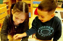 В старшей группе N4 "Любознайки" два раза в неделю проводятся занятия с материалами М. Монтессори. Дети с удовольствием изучают математику и язык по методике Монтессори. Они сами выбирают интересные для себя занятия, а педагог рассказывает «правила» игры. Такие математические и языковые игры гораздо более эффективны для дошкольников, чем стандартные курсы за школьной партой.