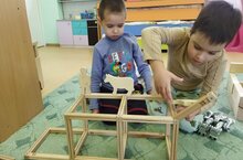 Реализации проекта «Детские сады Альметьевска: открытие каждый день». Во всех группах детского сада деревянный конструктор «БАБАШКИ» постоянно в деле. Различные постройки (любимые гаражи, трассы у мальчишек; у девочек домики для кукол), дети измеряют, сравнивают; создают пространства для сюжетно-ролевой и режиссерской игры; моделируют реальность – что увидели, с большим желанием воплощают у себя в группе, создают новые конструкции. Да, конструктор бабашки, один из немногих, который может решать важные задачи: игра, каждодневная продуктивная деятельность, моделирование, общение, пространственная ориентация, и заменит кучу разных игрушек (игрушки заместители – каждый кубик можно обыграть и представить что это супер-герой). Наши дошколята осваивают работу в группах, проявляют самостоятельность и инициативу. Интересно наблюдать как знакомятся с конструктором, дети только пришедшие в сад, наши малыши. В домашней обстановке игрушек много, они все красочные яркие, пластмассовые, порой не несущие за собой никакой развивающей, а тем более обучающей направленности. И вот бабашки, они надолго привлекают внимание детей, первые постройки - башенки, дороги, понимание того что построить можно все, что угодно.