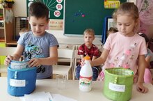 2 день участия в проекте- обсуждение проблемы загрязнения пластиком. В игровых ситуациях рассматриваем раздельный сбор мусора, и что можно сделать с ним, как утилизировать и как уменьшить пользование пластиком. Те же крышечки можно собирать и через волонтеров отправлять на переработку, что мы и делаем уже два года. Можно изготовить нужные предметы, например просто поделки для украшения группы, а можно такие вещи которые пригодятся в хозяйстве, например, органайзеры для цветных карандашей. Очень много в быту пользуются полиэтиленовыми пакетами, которые можно но и нужно заменить на бумажные или экологические сумки многоразового использования.