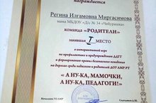 21 марта на базе МБДОУ №57 «Соловушка» прошла интерактивная игра по профилактике и предупреждению ДДТТ и формированию правил безопасного поведения на дорогах среди педагогов и родителей АМР РТ «А ну-ка мамочки, а ну-ка педагоги!» Наш детский сад представляла мама воспитанницы группы «Радуга» Регина Илгамовна Миргасимова. В упорной борьбе, пройдя шесть станций, выполнив все задания, и набрав наибольшее количество очков - 317 команда родителей победила, и заняла почетное призовое первое место.