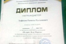 18 января состоялись соревнования на ПРИЗ Деда Мороза среди детей, педагогов и родителей по знанию правил дорожного движения. Наш детский сад представлял папа Хафизова Рамзиля, воспитанника средней группы №6 – Хафизов Р.Р. Команда родителей заняла I место. Поздравляем победителей ежегодных соревнования на Приз Деда Мороза