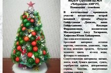 По традиции в декабре проходит Всероссийский конкурс в рамках международной программы Эко-школа Зеленый флаг «Елочка, живи!» На региональный этап конкурса было представлено две елочки, выполненные родителями группы «Радуга» и воспитателем Сабировой Г.Н. Елочка, выполненная воспитанником второй младшей группы «Радуга» Гайфутдиновым Даниэлем и мамой Гайфутдиновой Ильнарой Фирдависовной , воспитатели Магданурова Алсу Тагировна, Хафизова Юлия Хайдаровна; изготовлена из: бросовый материал: остатки картона, синтепона, упаковки, тара из-под моющих средств, бутылки зеленого цвета из-под воды, футляры от киндеров; сопутствующие материалы: ватман, лента, клей, бумага цветная, гуашь, серебристая краска, декоративные стразы, блестки, высушенные елочные шишки победила в региональном конкурсе, и представлена на Всероссийский конкурс. Смотри группу в Контакте «Эко-школа «Зеленый флаг»