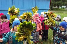 Осень золотая. Какие прекрасные деньки. Можно гулять с друзьями на улице, играть в догонялки, собирать красивые листья. На территории детского сада множество деревьев, украшенных золотой листвой и березка, и рябина, липа, клен. Пригревает осеннее солнышко, убрали последний урожай со своих грядок, шуршат под ногами листочки, собираются в букеты. Из красивых осенних листьев дошколята делают аппликации, собирают узоры.