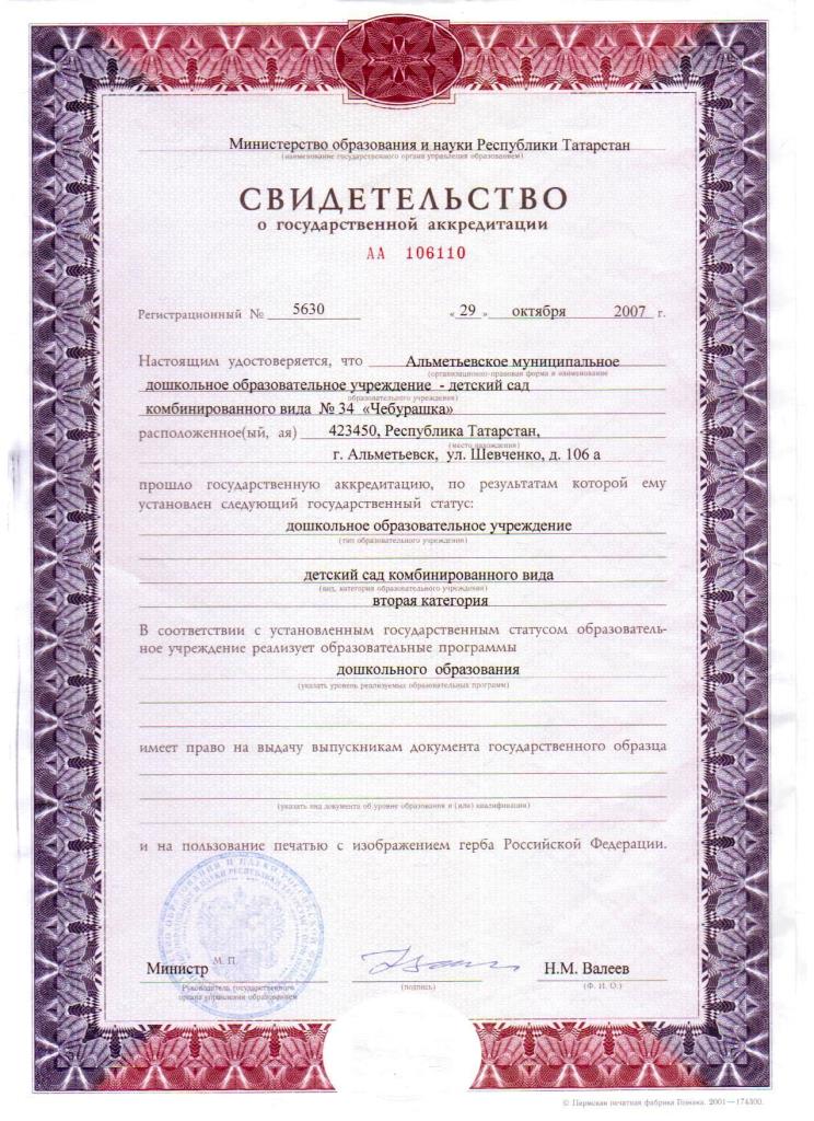 Свидетельство о государственной аккредетации