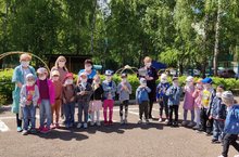 В старшей группе "Солнышко" прошло развлечение "День Бантиков"-праздник смеха, веселья и радости. На праздник все участники пришли с элементами бантов: :девочки в волосах и на платьях, мальчики с бабочками - браслетами. Начался праздник с появления клоунессы Ириски. Она загадала детям загадку о девочке с голубыми волосами, которая носила огромный бант, а потом дети танцевали под музыку из фильма "Буратино". Дети повторили правила дорожного движения (игра "Светофор", "Красный, жёлтый, зелёный"), посмотрели выступление на самокате, участвовали в эстафета, танцевали с ленточками, смеялись от души. А закончился праздник конкурсом рисунков на асфальте на тему" О лете".