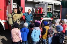 Воспитанники подготовительной группы "Жемчужина" посетили пожарную спасательную часть № 65. Ребята рассмотрели пожарную и спасательные машины, необходимое оборудование. Мальчишки и девченки с удовольствием примеряли на себя каски и спсательные жилеты, задавали волнующие их вопросы. По дороге в ДОУ оживленно обсуждали увиденое, кто то уже определился с будущей профессией.