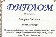 Поздравляем воспитанницу 2 младшей группы Яббарову Иделину, занявшая 3 место в IV национальном конкурсе чтецов "Я люблюсвой родной язык".