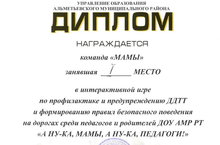 Сегодня на базе МБДОУ "Д/с № 30 "Снегурочка" г.Альметьевска" проведена интерактивная игра по профилактике и предупреждению ДДТТ и формированию правил безопасного поведения на дорогах среди педагогов и родителей ДОУ АМР РТ "А НУ-КА, МАМЫ, А НУ-КА, ПЕДАГОГИ!" Огромное спасибо маме (Каримова Марселя) Каримовой Светлане Евгеньевне за активное участие в игре и победу ( 1 место).