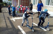 3 сентября 2018 года с детьми старшего дошкольного возраста было проведено развлечение, приуроченное Дню знаний ПДД. Вызвать познавательную мотивацию и интерес к школе помогла Баба Яга, которой были показаны как дети могут читать, считать, танцевать и петь. А с правилами безопасного поведения на дорогах нашего поселка дети ознакомили Колобка, который заблудился, убегая от волка. Так наши педагоги выявили уровень усвоения практических навыков и сформированность дружеских и доброжелательных отношений между детьми и героями любимых сказок. Дети смогли показать свои спортивные способности, соревнуясь между собой на самокатах.