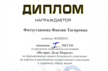Поздравляем команду педагогов "Фликер" (воспитателя Фатхутдинову Ф.Т.), занявшая 1 место в городскомм спортивном состязании "На приз Деда Мороза" по формированию правил безопасного поведения на дорогах и приобщению подростающего поколения к здоровому образу жизни.