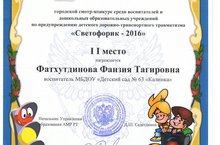 Поздравляем воспитателя подготовительной группы №1 Фатхутдинову Фанзию Тагировну за победу ( 2 место) среди педагогов ДОУ АМР в городском смотре-конкурсе "Светофорик-2016". Дак держать!!!
