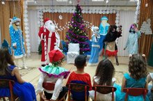 Разноцветные, сверкающие гирлянды и ярко украшенная ёлочка принесли детям ощущение чуда. С самого начала представления сказочные герои увлекали детей в волшебный мир сказки. Дети окунулись в праздничную атмосферу приключений, поучаствовали в интересных конкурсах. С появлением Деда Мороза начался настоящий праздник с песнями и танцами, хороводами вокруг ёлки.