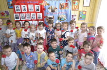 День Победы. В МБДОУ № 58 предварительно с детьми в группах были проведены занятия, беседы о подвигах советских людей ко Дню Победы в Вов. Затем дети старших и подготовительных к школе групп отправились на экскурсию к мемориальному комплексу, расположенному у здания военного комиссариата и в картинг клуб «8 Миля».