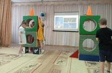 Затем дети собирали ракету из геометрических фигур, проявив свою творческую фантазию. Разгадывали загадки о космических объектах. Были проведены игры-эстафеты "Займи место в ракете", "Спаси космонавта", "Полет на луну".