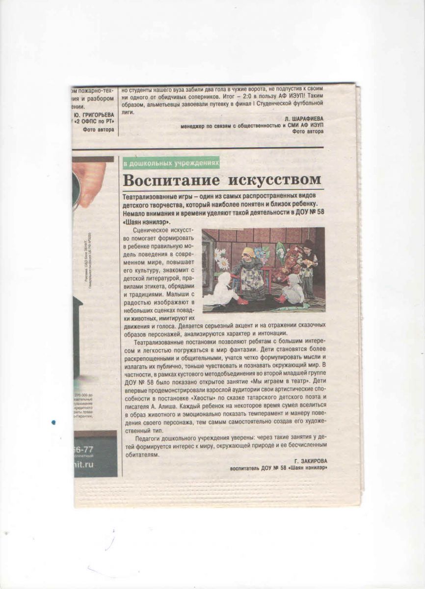 Муниципальное бюджетное дошкольное образовательное учреждение «Детский сад комбинированного вида № 58 «Шаян нэнилэр» Альметьевского муниципального района Республики Татарстан»//«Татарстан Республикасы Әлмәт муниципаль бюджет мәктәпкәчә белем бирү учреждениясе 58 нче катнаш төрдәге «Шаян нэнилэр» балалар бакчасы»