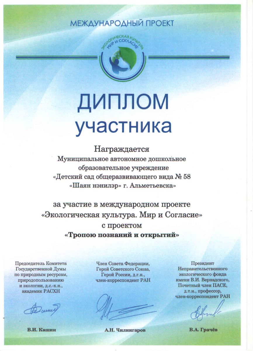 Муниципальное бюджетное дошкольное образовательное учреждение «Детский сад комбинированного вида № 58 «Шаян нэнилэр» Альметьевского муниципального района Республики Татарстан»//«Татарстан Республикасы Әлмәт муниципаль бюджет мәктәпкәчә белем бирү учреждениясе 58 нче катнаш төрдәге «Шаян нэнилэр» балалар бакчасы»