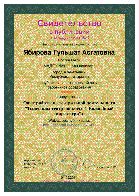 Муниципальное бюджетное дошкольное образовательное учреждение «Детский сад комбинированного вида № 58 «Шаян нэнилэр» Альметьевского муниципального района Республики Татарстан»//«Татарстан Республикасы Әлмәт муниципаль бюджет мәктәпкәчә белем бирү учреждениясе 58 нче катнаш төрдәге «Шаян нэнилэр» балалар бакчасы»