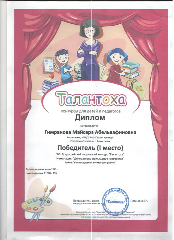 Гимранова М.А. победитель конкурса "Талантоха"