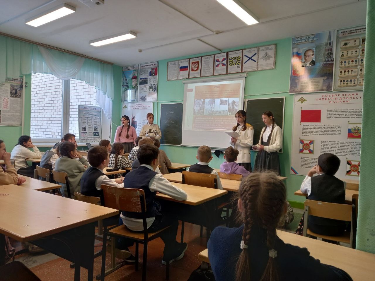 Ознакомление и привлечение 5 классов с историей и жизнью Юнармейского движения в Гимназии 1 имени Ризы Фахретдина. Был проведен открытый урок Юнармейцами 8 класса.