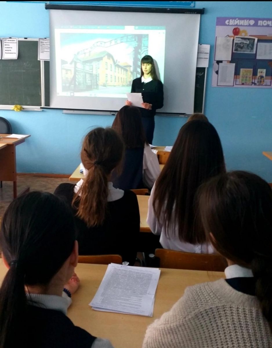 В рамках " Дня памяти жерт Холокоста" 25 января в Гимназии №1, были проведены информационно просветительские уроки для старшеклассников: Урок- памяти « День памяти жертв Холокоста" для учеников 10А и Б класса и «Холокост - память поколений»для учеников 11а класса.