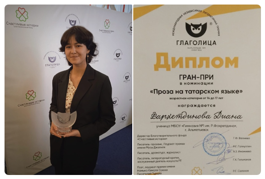 10б сыйныф укучыбыз "Глаголица"да татар прозасы буенча Гран-прига лаек булды