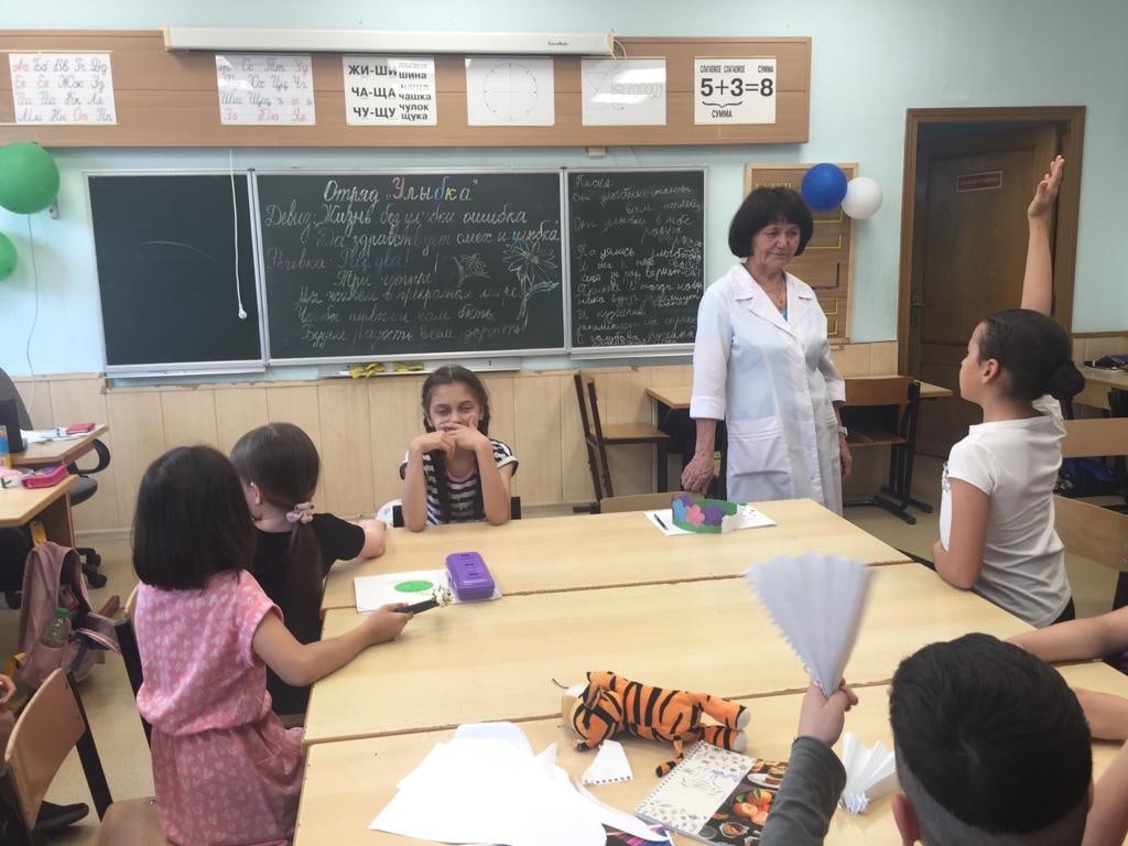 Фельдшер гимназии Рамиля Габдрахмановна провела беседу «Знакомство с организмом человека». В отряде «Улыбка» была проведена беседа о строение собственного тела, расширять представление о своём организме, о его строение.