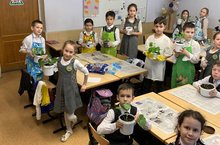 3в класс активно готовится к весеннему сезону. Посажено 32 черенка герани для облагораживания приусадебного участка гимназии.