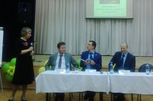 Дмитрий Петров безнең гимназиядә дә булды. Укучылар кунакка татарча концерт номерлары күрсәттеләр, укытучылар үзләренең кызыксындырган сорауларын бирделәр.