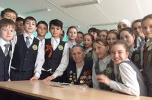 Накануне Дня Победы учащиеся 5 Б класса встретились с ветераном Великой Отечественной войны Яхиной Фатымой Яхиевной. Начали встречу со стихов и песен, посвященных войне, а затем слово предоставили гостье. Ребята с интересом слушали ее воспоминания о дорогах войны, по которым она прошла в качестве зенитчицы, о трудностях, которые выпали на долю совсем юных девушек и юношей, разглядывали фотографии однополчан, задавали вопросы. В конце встречи сделали несколько фотографий на память. -