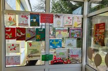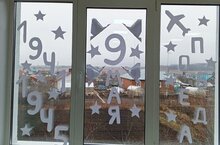 Украшение входной группы. Выставка детских работ, посвященное 80 летию Победы в ВОВ. 10.04.2025