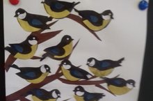 Была сделана коллективная работа " Синицы" и повесили кормушки для зимующих птиц. -