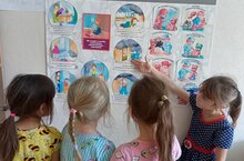 С целью ознакомления воспитанников с правилами поведения в ЧС провели занятие по безопасному поведению детей в различных ситуациях. Рассмотрели, какие ЧС происходят из-за природных явлений: ветра, воды, снега, солнца. Рассказали детям о профессии спасателей, оказывающих помощь людям и специальную технику.