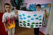 С воспитанниками разновозрастной группы провели беседу «День Победы в Сталинградской битве» и сделали коллективную аппликацию: "Битва за Сталинград".