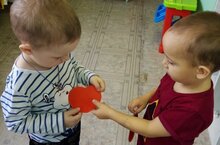 В "День Доброты" воспитанники второй младшей группы поздравили и подарили друг другу «Сердечки доброты и дружбы»