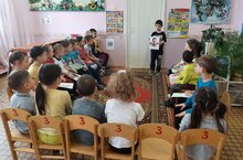 С детьми старшей группы было проведено тематическое занятие "Поэт - герой". С помощью презентации дети ознакомились с биографией и трудным жизненным путем поэта, далее дети с удовольствием инсценировали произведение поэта "Карак песи". В заключение Шарифуллина Лейла прочитала стихотворение Мусы Джалиля "Кызыма".
