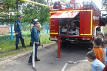 Была проведена встреча с пожарной частью " ПЧ 27". Настоящая пожарная машина со всеми комплектующими ждала юных спасателей. Специалисты части рассказали и показали как тушится пожар и какое оборудование для этого нужно. Показали боевую форму пожарного, пожарный рукав и откуда подаётся вода. Пожарная команда продемонстрировалп боевое развёртывание.
