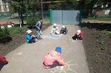 С детьми средней группы был организовано развлечение "Рисунки на асфальте". Отгадывали загадки. Детям понравилась интересная игра, где линиями нужно было соединить точки и получить интересный рисунок.