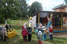 С детьми разновозрастной группы провели развлечение на тему «Лето в гости к нам пришло». Пели песни, танцевали вальс цветов, играли с медведюшкой в спортивные игры. Было очень весело.