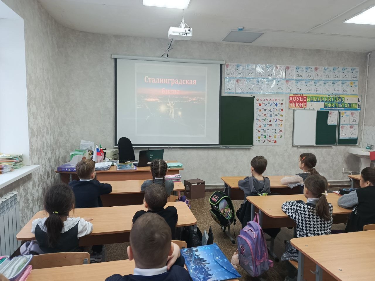 В рамках этого дня советником директора по ВР совместно с классными руководителями были организованы классные часы "Сталинград:200 дней мужества", кинолекторий " Сталинград", в ходе которого дети посмотрели документальные фильмы про Город-герой Сталинград.
