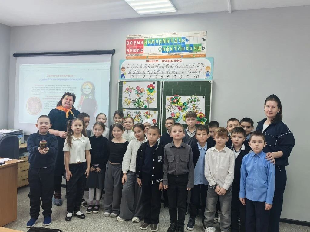 В рамках Регионального проекта «Орлёнок‑путешественник» по федеральному окружному проекту «Большое Орлятское путешествие» наши учащиеся младших классов вместе с советником директора по ВР и учителем ИЗО отправились в удивительное путешествие в мир золотой хохломы- одного из самых ярких символов Нижегородской области. Основные цвета хохломы :красный, черный, золотой(желтый), немного зеленого.