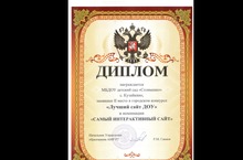 Наш детский сад занял II место в городском конкурсе "Лучший сайт ДОУ" в номинации "Самый интерактивный сайт " и был награжден дипломом.