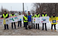 Участники акции демонстрировали водителям плакаты с правилами ПДД и раздавали бумажных голубей.