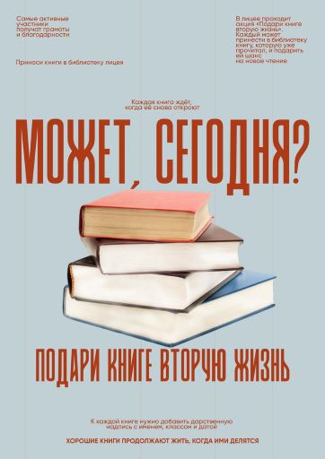 Посмотри на свою полку — там точно есть книга, которую ты уже прочитал. Принеси её в библиотеку, и она снова попадёт к тем, кто любит читать.